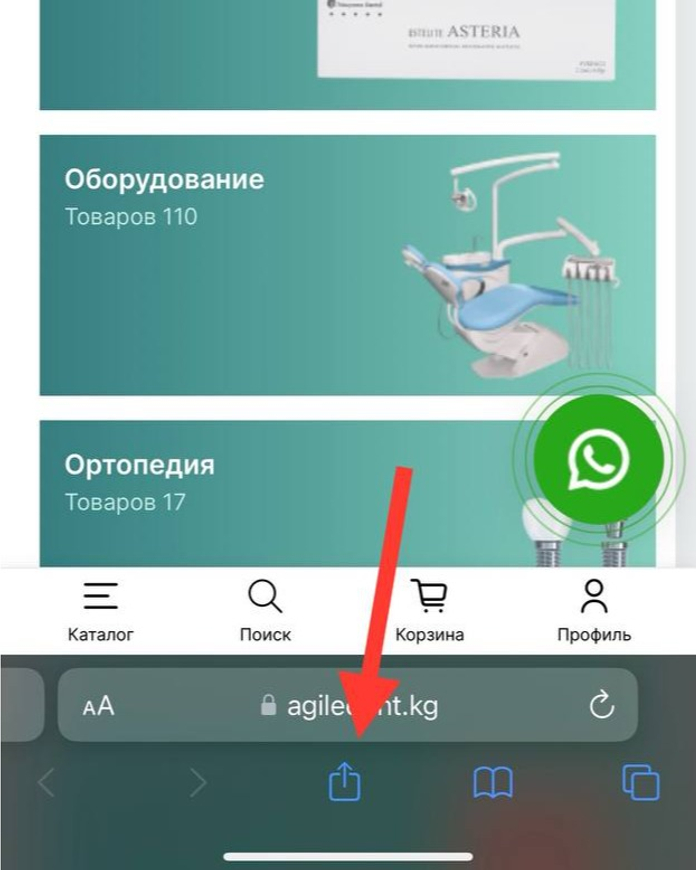 1 - Откройте сайт Agiledent.kg в браузере Safari